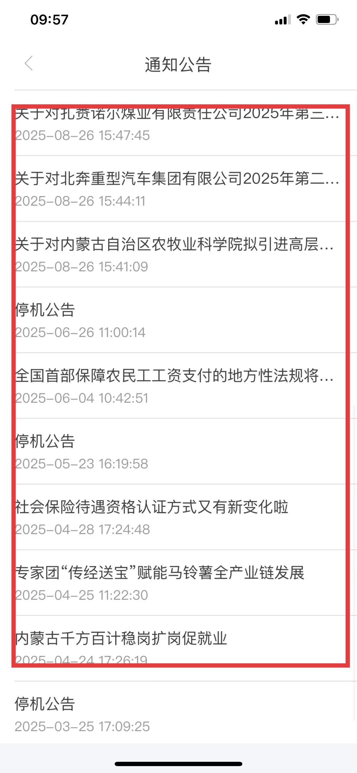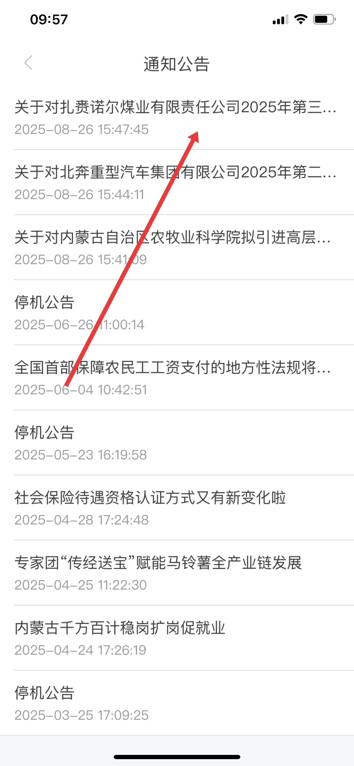 4、若要查看更多通知公告,返回通知公告列表页面,上下滑动屏幕,选择其他通知公告进行查看。