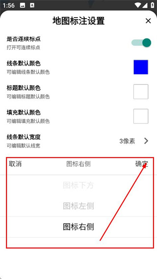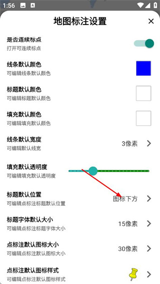3、在地图标注设置页面,点击标题默认位置,弹出位置选择菜单。