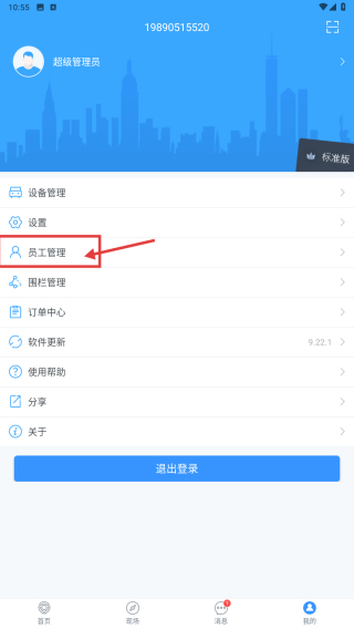 2、在个人中心,点击员工管理选项,进入员工管理功能区。
