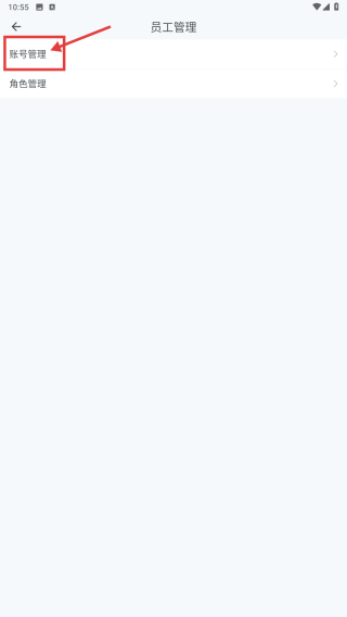 3、在员工管理页面,点击账号管理选项,进入账号管理界面。
