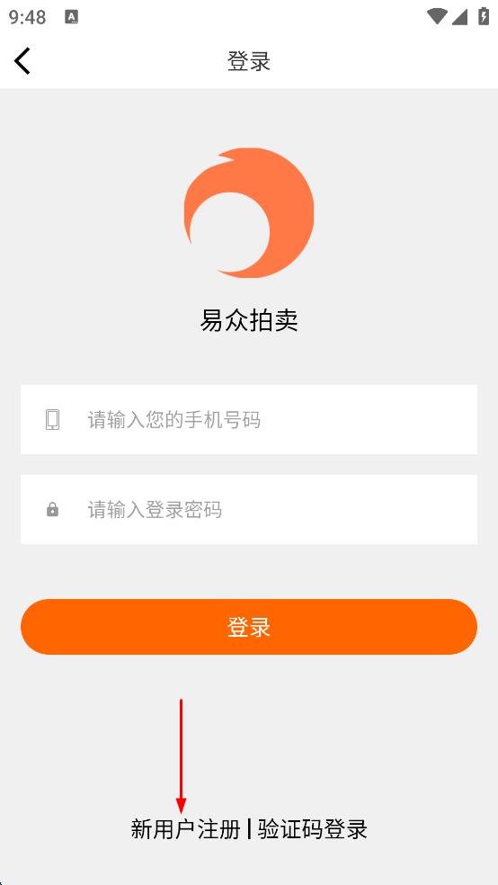 3、在登录页面,点击下方新用户注册|验证码登录选项。
