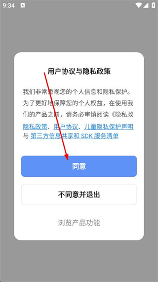 1、打开智能生活,在弹出的窗口中,点击同意按钮。