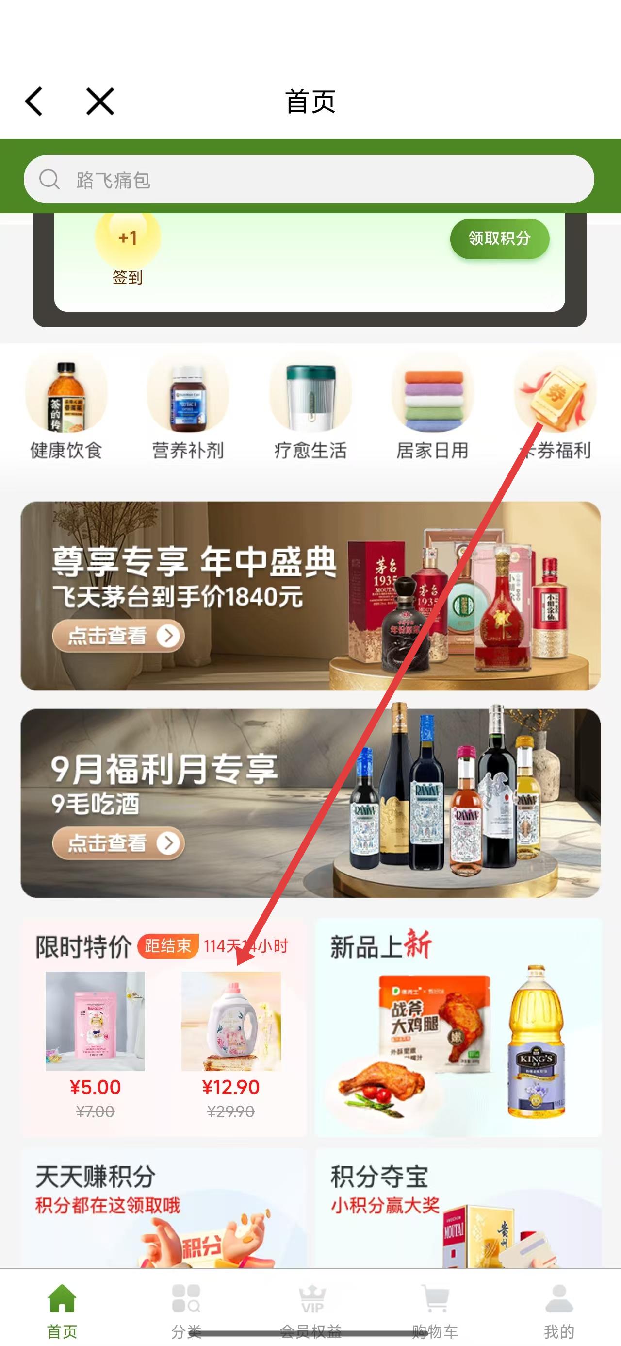 1、在应用的首页中,可以点击会员商城按钮,进入查看会员商品。