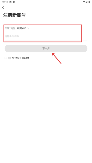 4、在注册页面填写手机号码,点击下一步按钮,继续完成账号注册流程。