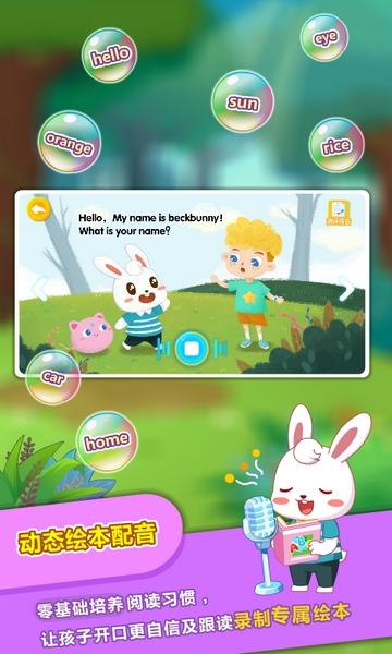 2、动态绘本:专为零基础儿童设计的互动式英语阅读体验,生动有趣的动画绘本激发阅读兴趣,跟读录制功能让孩子大胆开口,在反复练习中提升口语表达能力和记忆力。