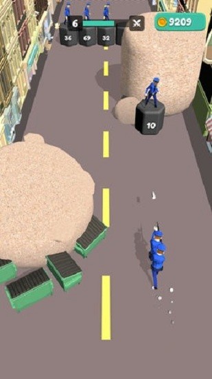 3、环境互动元素增强战术维度,警车可作为临时掩体,路障能改变敌人行进路线,高层建筑提供狙击优势点位,场景道具的合理运用能扭转战力对比。