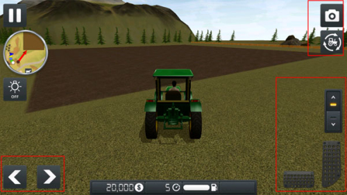 3、初始将驾驶拖拉机进行活动,左下角设有方向键,右侧分布视角切换与油门刹车按钮。