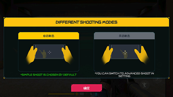 8、游戏有自动射击模式和手动射击模式,自动射击模式只要滑动屏幕右侧控制视角,把准星对准敌人就可以自动开火。