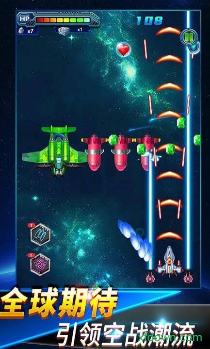 战场上,玩家们只需牢牢掌控所驾驶的战机躲避敌军子弹和导弹,并尽最大的努力利用一切可利用资源,如强化主武器威力的暴走能量和吸铁石等道具,收集增强子弹、保护战机等的超自然科技能量以及使用全屏幕炸毁敌机、激光攻击等华丽的徽章技能,虽操作简便,但却技能炫酷,射击手感杠杠的。