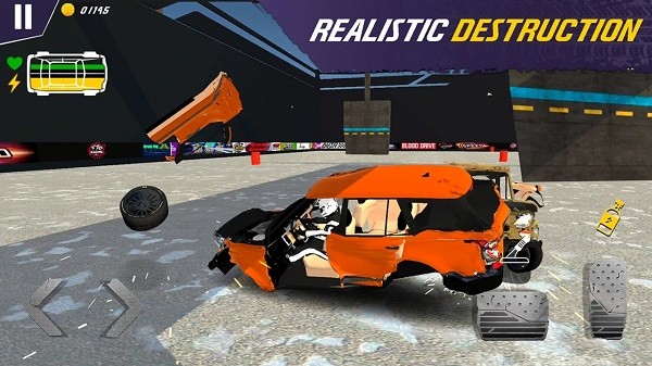 1、采用高品质3D画面风格,细致还原车辆外壳变形、玻璃碎裂及零件脱落的真实破坏过程。
