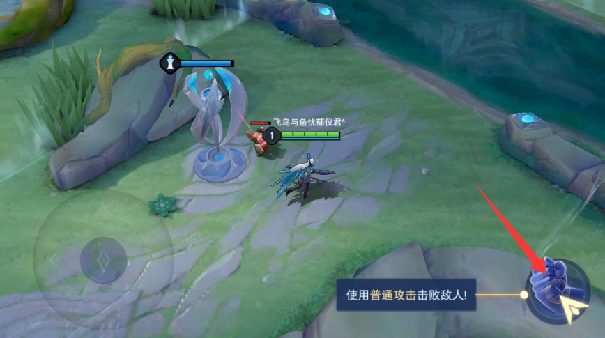 3、点击右侧普通攻击按钮对敌人发动基础攻击,持续输出可击败对手目标。