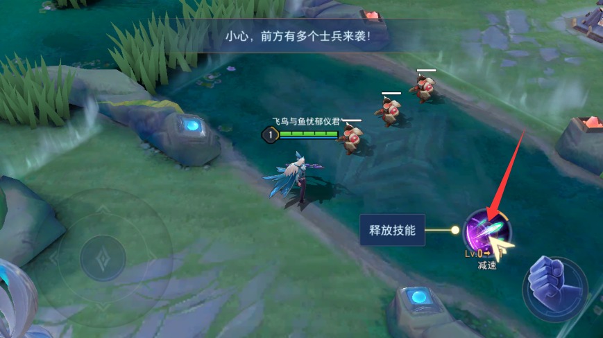 4、学习技能后点击右侧技能图标,瞄准小兵或敌人释放技能造成范围伤害。