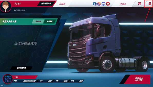 1、进入游戏界面后点击右上角的卡车图标按钮,进入车辆相关功能设置菜单。