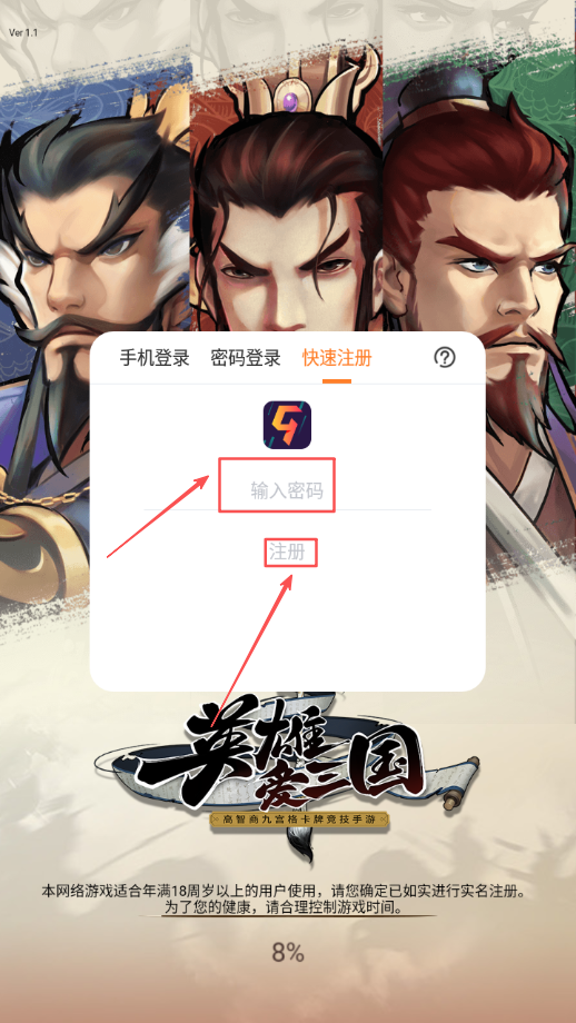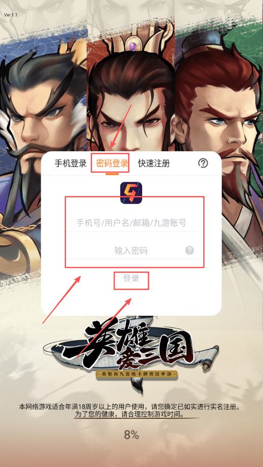 2、若已注册过账号,可直接选用手机号和密码登录方式输入信息进入游戏。