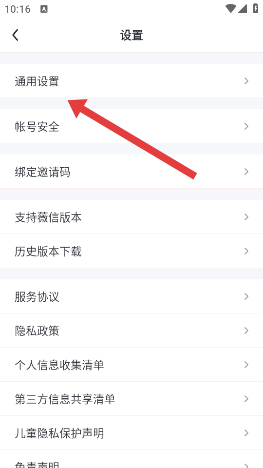 2、在设置页面,点击通用设置的选项,进入通用设置界面。
