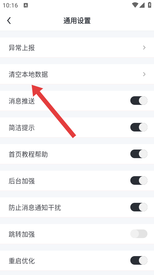 3、在通用设置界面,点击清空本地数据选项,触发数据清空确认弹窗。
