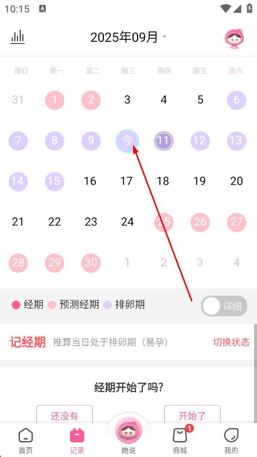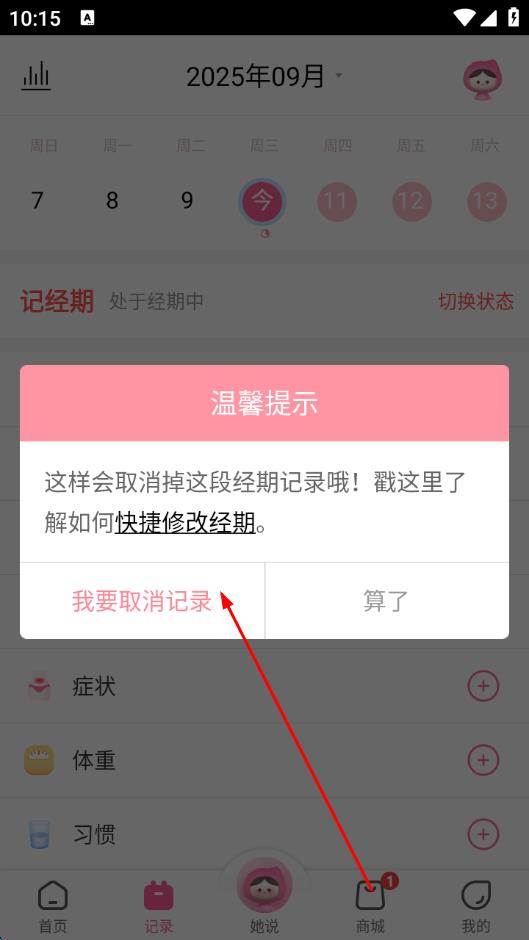 4、取消原有记录后,重新在日历上选择正确的月经开始日期,完成月经开始日的修改。