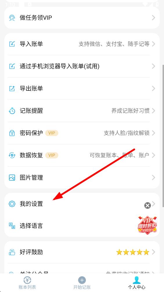 3、在设置页面中,向下滑动找到支持离线记账选项。