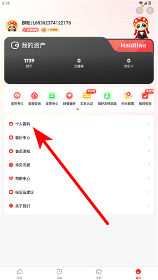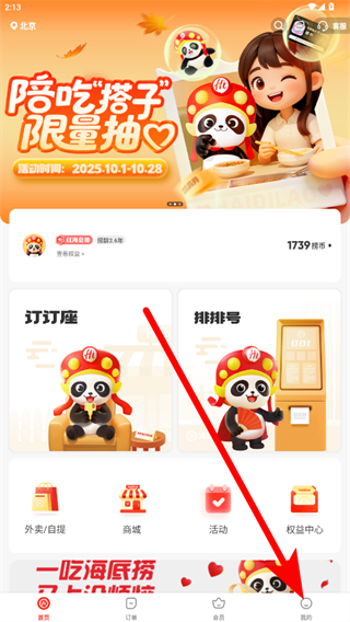 1、打开海底捞APP,点击底部导航栏最右侧的我的,进入个人页面。