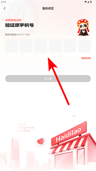 4、在重新绑定界面,先获取并输入原手机号收到的验证码,然后按照后续提示完成新手机号的验证与绑定操作。