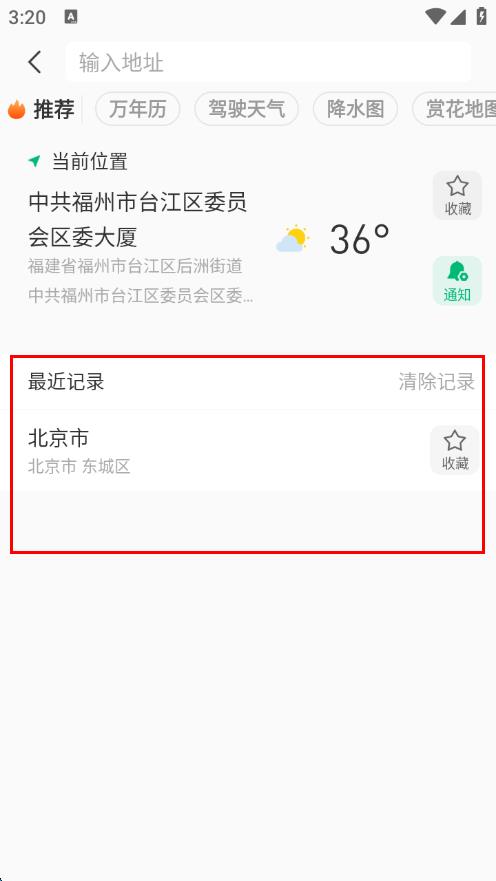 异地天气收藏关注:独家支持收藏多个精确到街道的地址,关心你关心的人