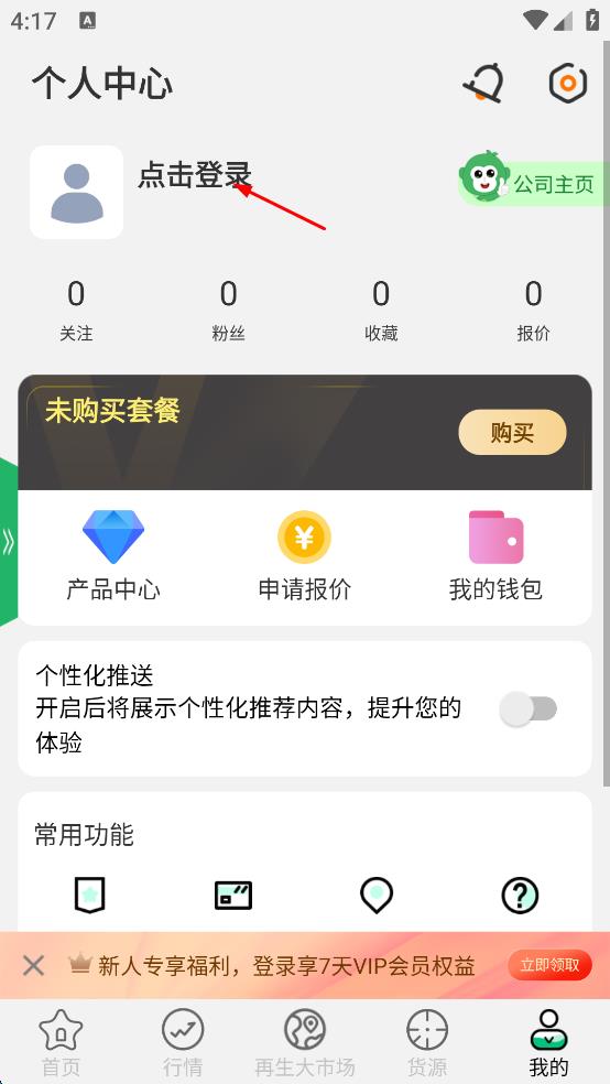 3、在个人中心页面,点击点击登录按钮。
