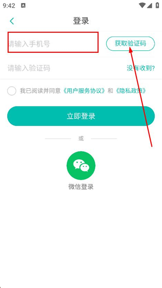 3、进入登录页面后,输入需要登录的手机号并获取验证码。