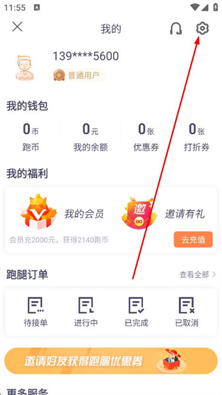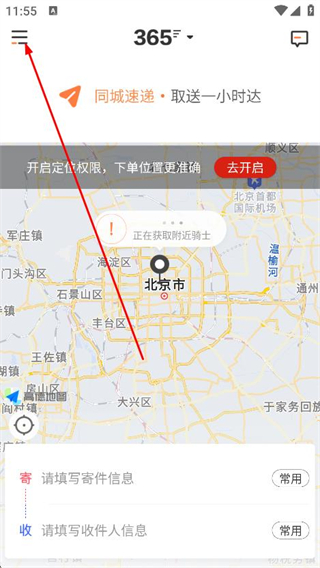 1、打开365跑腿网app,点击左上角的菜单图标。