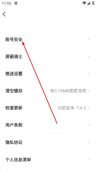 3、进入设置页面后,找到并点击账号安全选项。