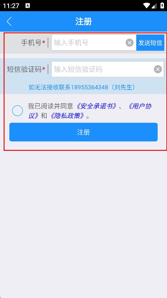 4、在注册页面,输入手机号和短信验证码,勾选已阅读并同意相关协议后,点击“注册”按钮,完成注册操作。