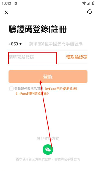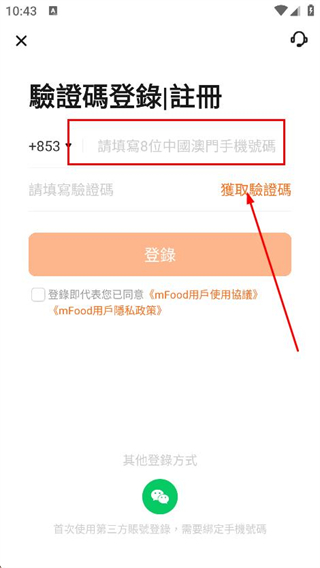 3、在输入框中填写需要登录的手机号码,并点击獲取驗證碼。