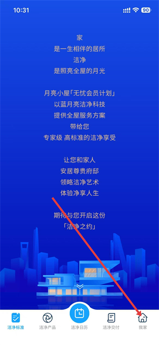 1、打开月亮小屋app,点击底部导航栏我家选项。