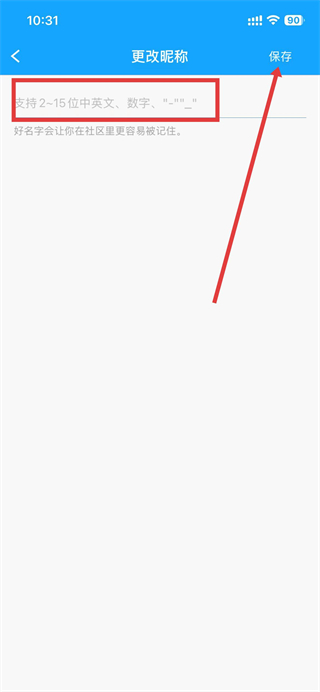 4、输入新昵称,点击保存,即可完成昵称修改。