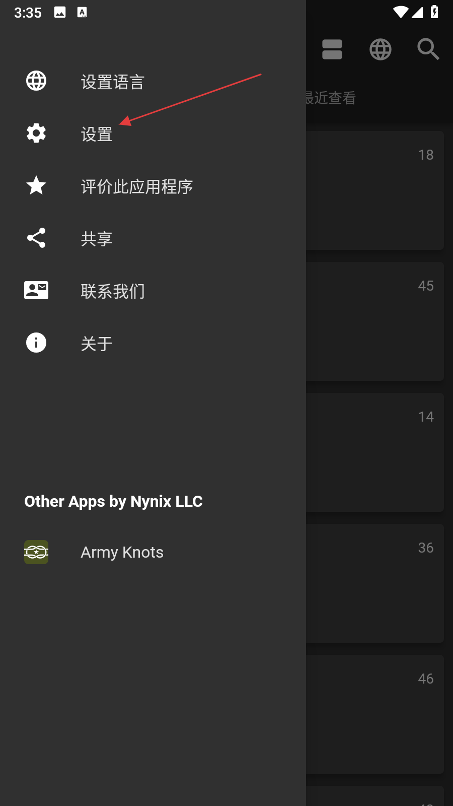 2、在展开的菜单中找到设置选项并点击,进入设置界面。