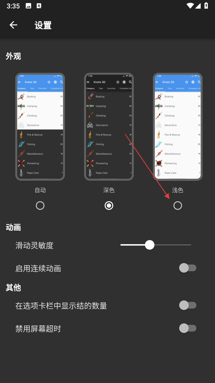 3、在设置界面中,找到外观板块,该板块展示了自动、深色、浅色三种外观模式的预览图。
