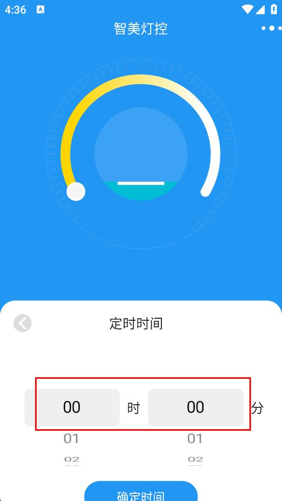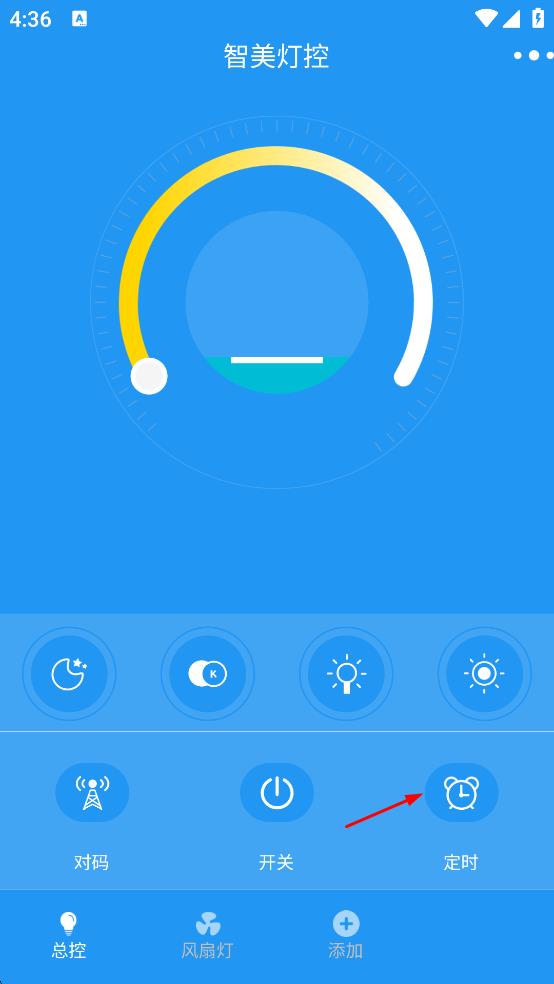 2、在智美灯控主界面,点击“定时”按钮,进入定时时间设置界面。