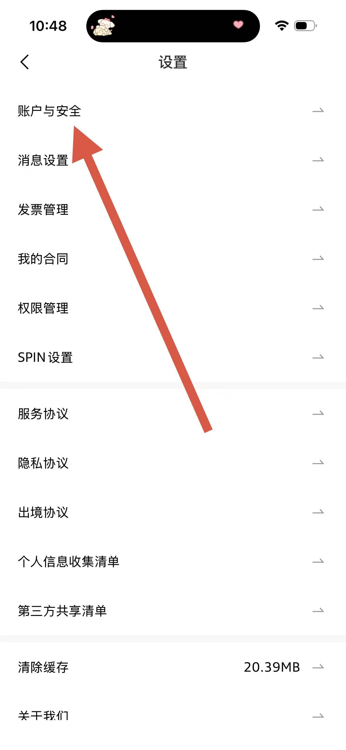 3、在设置页面,点击账户与安全选项,进入对应设置界面。