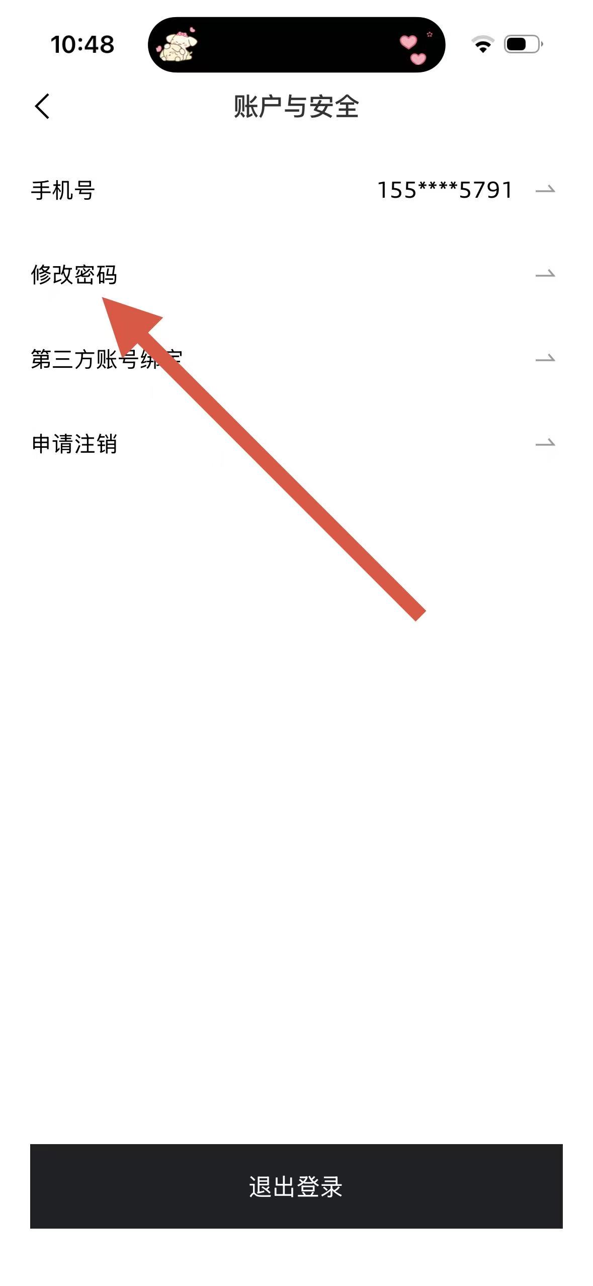 4、在账户与安全界面,点击修改密码选项,进入修改密码页面。