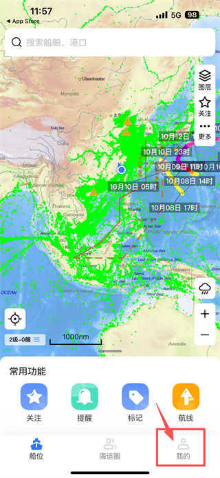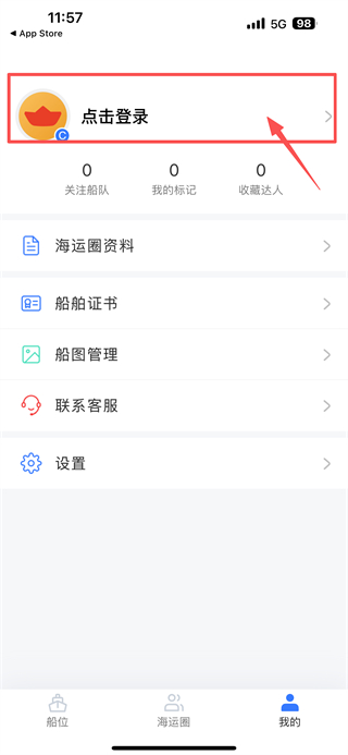 1、打开船舶追踪类应用,点击底部我的选项,进入个人中心页面。
