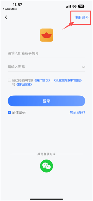 3、在登录/注册界面,点击注册账号选项,进入账号注册页面。