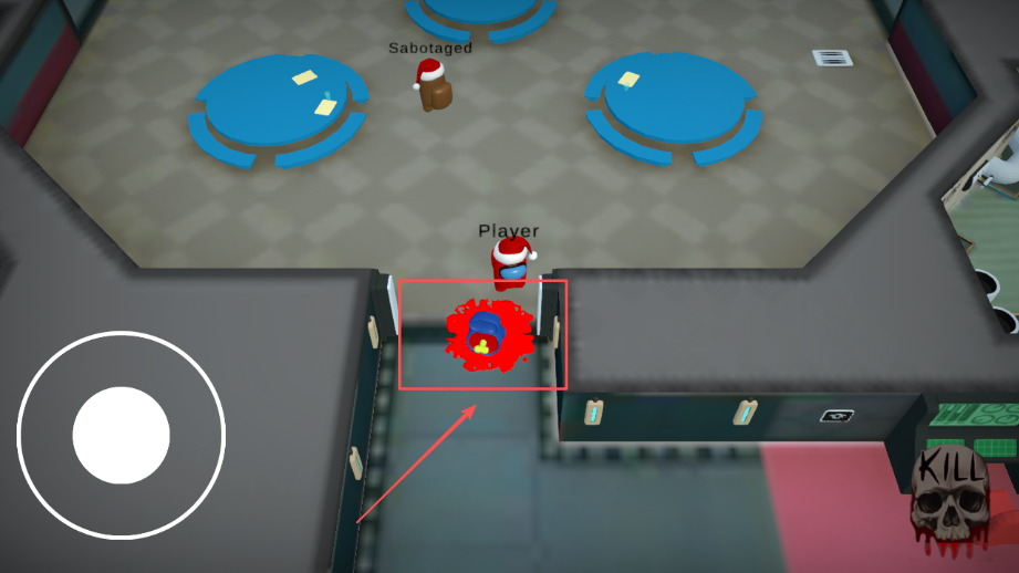 4、完成点击右下角杀人按键的操作后,只要没有被其他玩家发现,就能顺利完成杀人,达成内鬼的阶段性目标。