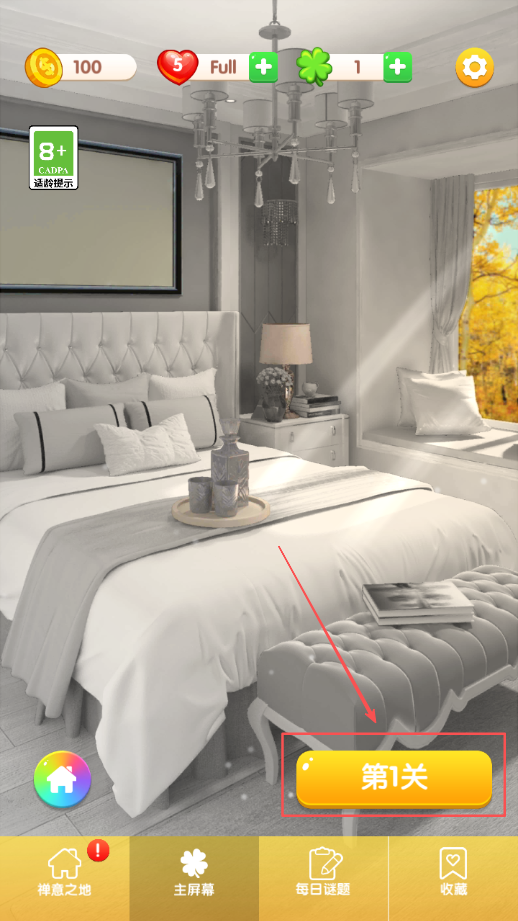 2、完成协议同意后,在关卡选择界面里找到第一关的图标,点击这个图标就能进入第一关的游戏场景。