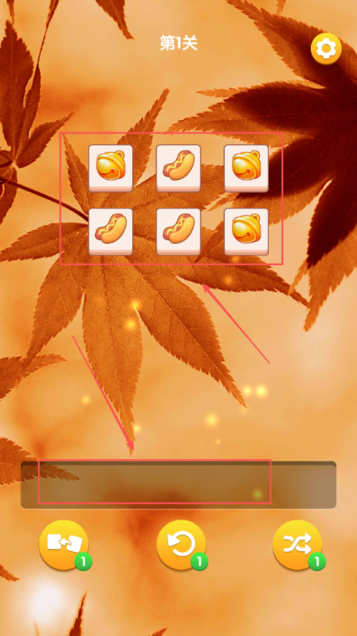 3、在关卡内看到散落的方块牌,把三个图案相同的方块牌依次点击并移到屏幕底部,就能完成消除。