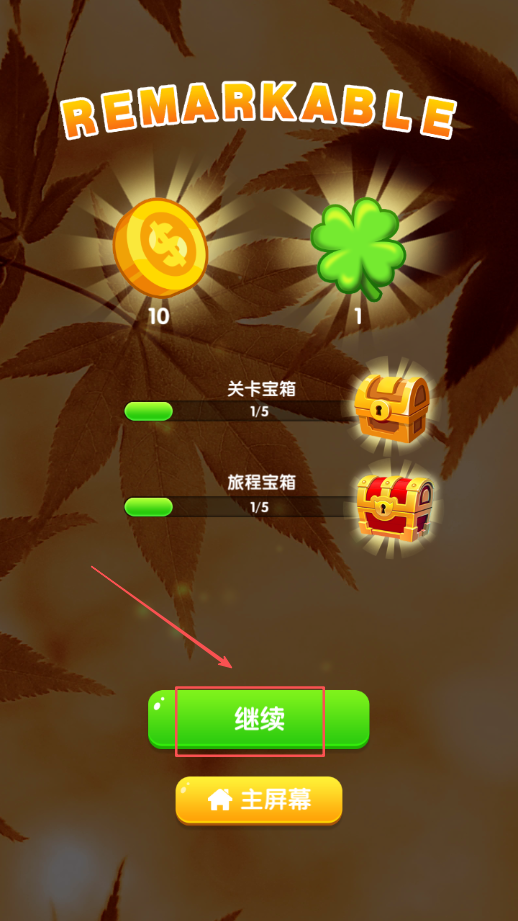 4、将屏幕上所有的方块牌都消除干净后,当前关卡就顺利通过,此时点击继续按钮就能进入下一关。