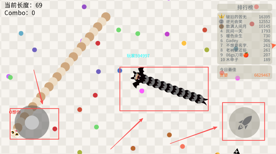1、通过吞噬光点和弱小对手成长壮大实力,增加身体长度和实力水平提升,逐步成为游戏中的强者霸主地位。
