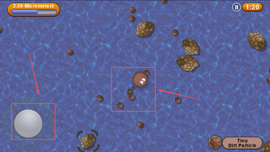 2、控制角色寻找并吞噬比自己小的物体,通过不断进食获得成长进化,提升自身体积,增强游戏实力。