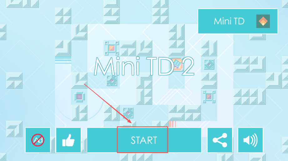 1、打开游戏后找到开始按钮,点击这个按钮就能进入游戏的主操作界面,为后续选择关卡做准备。