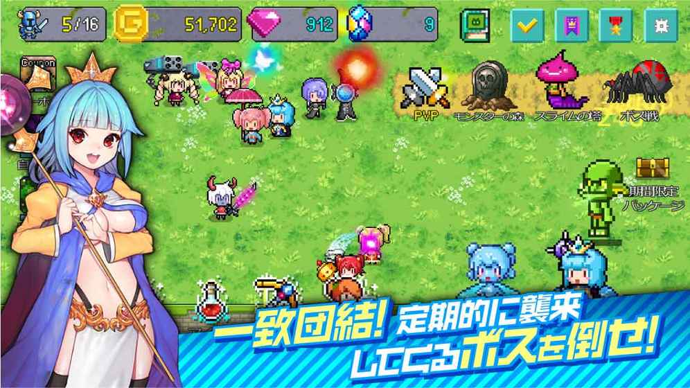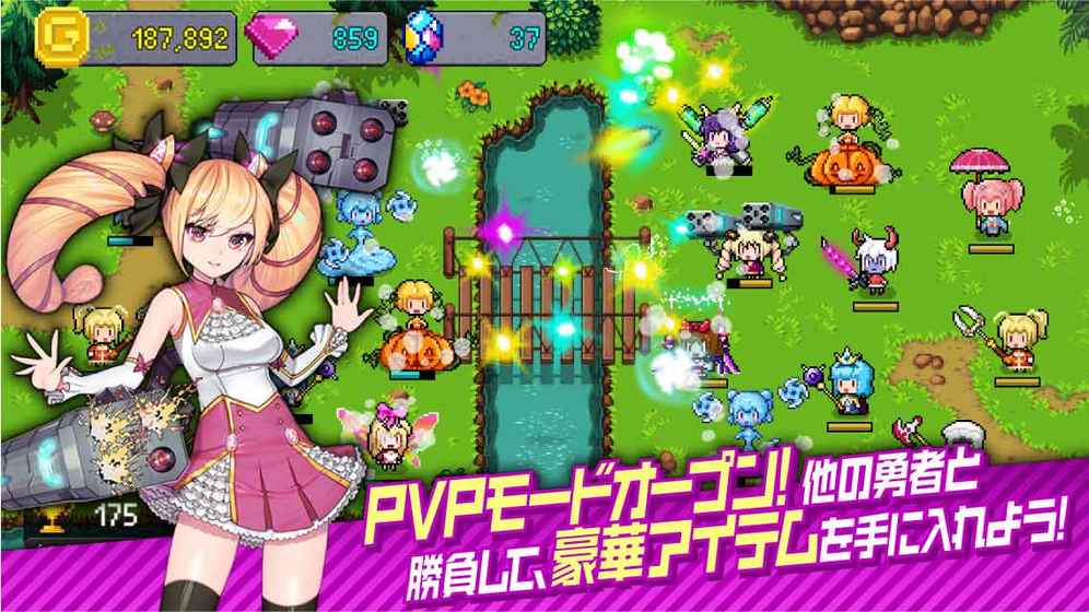 本作是一款以像素风格为主的RPG手游,所有登场的勇者都是可爱的女孩子,为玩家带来轻松愉快的游戏体验。玩家可以通过简单的合成操作,将勇者们组合成更强大的战斗单位,带领她们与敌人展开激烈对决。除了基础的合成玩法外,游戏还提供了更多有趣的机制,例如使用两名以上的同种勇者进行特殊合成,召唤出全新的勇者角色。此外,玩家还能通过收集召唤石来获得稀有的勇者,大大提升了游戏的收集乐趣和策略深度。