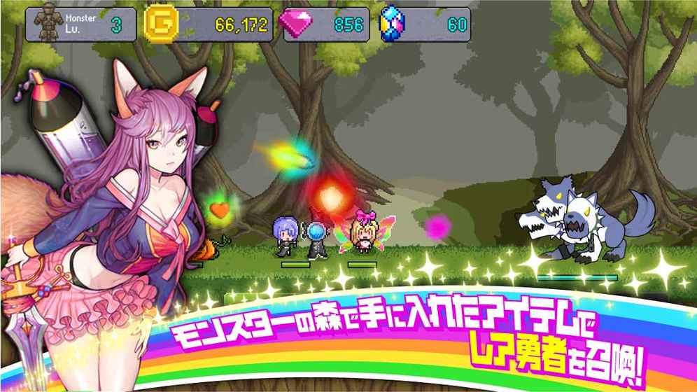 2、挑战怪物之森副本,击败强大敌人获取稀有道具,用于召唤更强大的勇者;