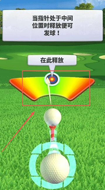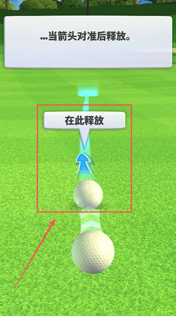 4、球离洞近时将蓝箭头对准洞口释放,距离远时重复拖球蓄力步骤再次击球前进。